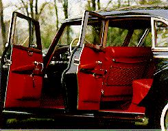 The exterior of this sedan is black. Its accoutrements include red leather upholstery, carpeted interior and trunk (or boot), burled wood trim, original radio, a three-speed semi-automatic transmission and a self-lubricating chassis. The instruments are calibrated in Imperial measure. It has a 6-cylinder, 3-litre engine.